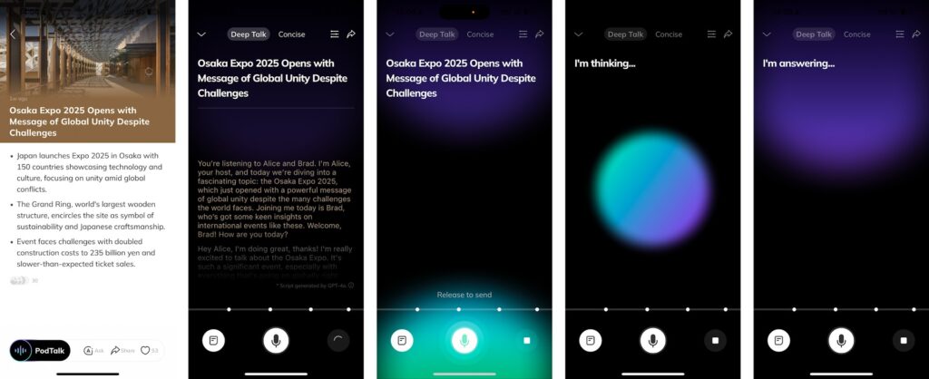 The AI anchors—Alice and Brad—create an experience significantly more engaging than traditional news reading or even podcasts. Their conversational style transforms complex information into accessible dialogue, making sophisticated topics approachable without oversimplification. The natural language processing is remarkably advanced, understanding complex questions even with background noise.